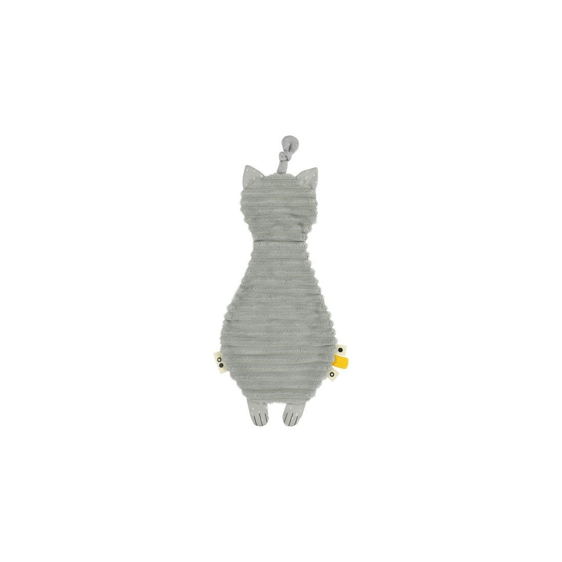 Miękka i przyjemna w dotyku urocza przytulanka szmatka z wesołym zwierzakiem, z miłym, prążkowanym futerkiem. Pełniąca funkcję wygodnej, materiałowej zawieszki do smoczka.