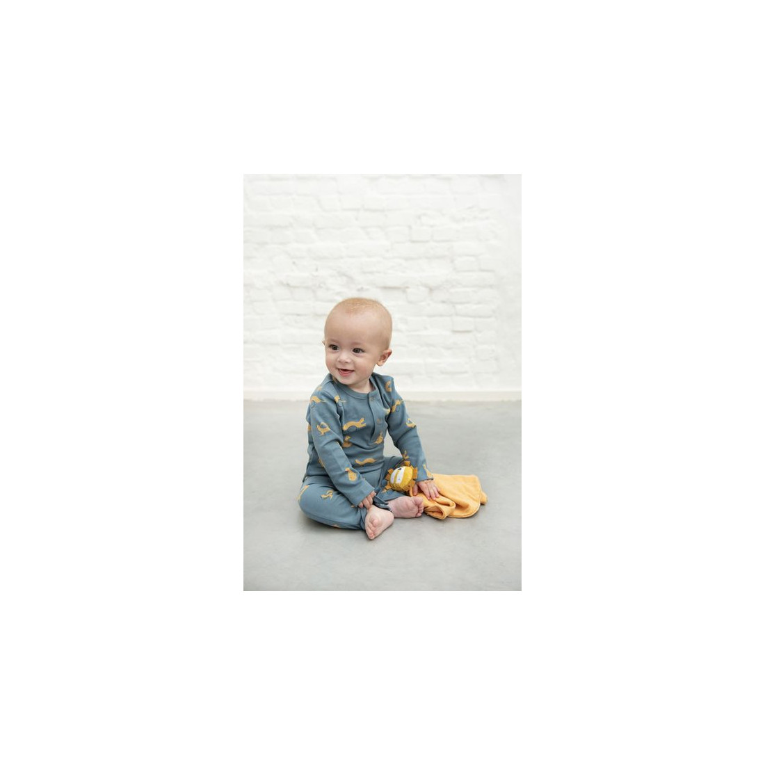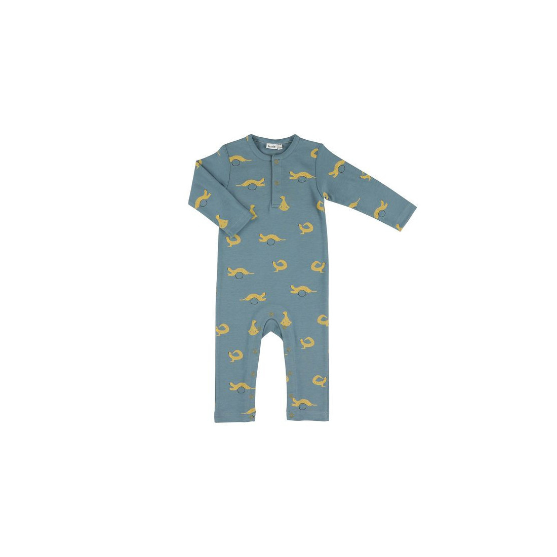 Niemowlęcy pajacyk w intrygujących kolorach i z ciekawymi wzorami. Ma okrągły dekolt, długie rękawki, wygodne zapięcia pod szyją i w kroku na napy. Nie powoduje ucisku i zapewnia swobodę ruchów. Kolory na długo zachowują swą barwę. Wykonany z wysokiej jakości bawełny organicznej.